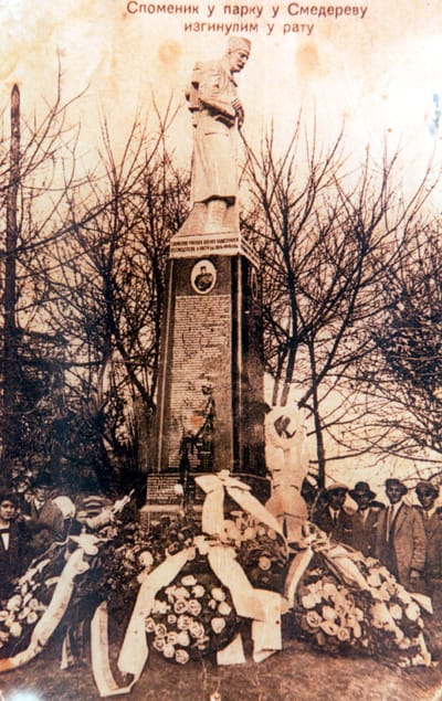 Na sve četiri strane postamenta Spomenika izginulima i umrlim vojnim obveznicima 1912-1919. na centralnom smederevskom trgu uklesano je 287 imena i prezimena palih ratnika sa navedenim činom ili zanimanjem, baš kao tekst o priložnicima, a postavlјene su tu četiri fotografije na porcelanu.