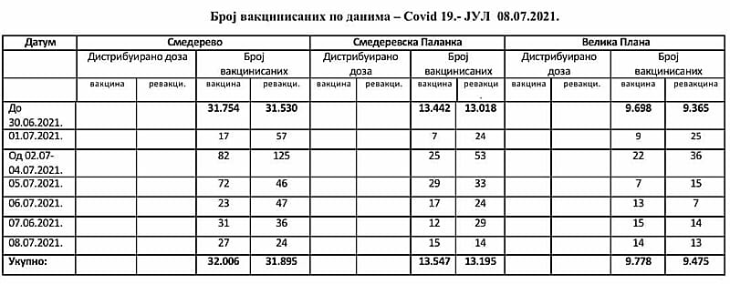 12. jul 2021 – Od početne euforije brojem vakcinisanih sada smo stigli dotle da su nam procenti mnogo manji nego u drugim državama. Zbog toga je, po rečima stručnjaka, koji naglašavaju – bez širenja panike, novi talas epidemije, i kod nas, gotovo izvestan. Broj vakcinisanih u Podunavskom okrugu, a ima ih po poslednjem preseku 55.241, maltene je jednak broju revakcinisanih, što samo znači da je interesovanje za imunizaciju splasnulo. U odnosu na broj stanovnika u Podunavskom okrugu, recimo, broj onih koji su se vakcinisali tek je nešto malo veći od 36 posto ukupne populacije.