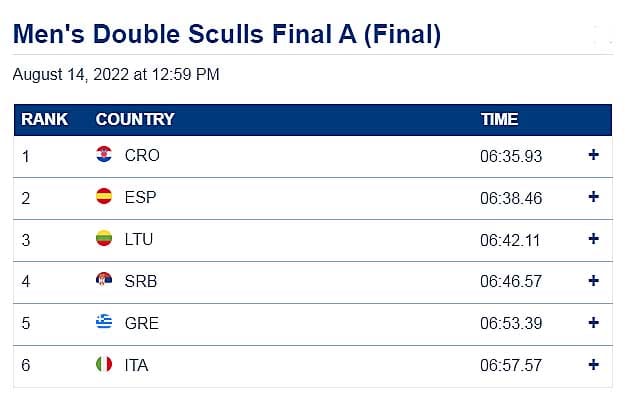 MINHEN, 14. avgust 2022 – Smederevac Aleksandar Filipović i Aleksandar Beđik iz Partizana osvojili su četvrto mesto rezultatom 6:46,57na danas održanoj finalnoj trci dubl skulova na Evropskom prvenstvu u veslanju u Minhenu.