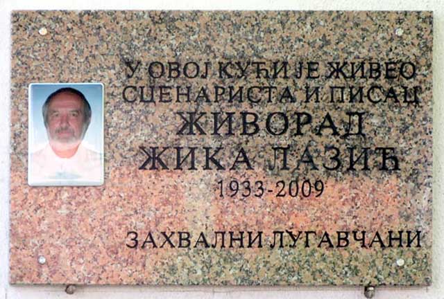 Živorad Žika Lazić rodio se u selu Lugavčina 1933. Umro je 2009. 13 septembra u Beogradu. Ime u srpskoj književnosti započeo je da gradi 1957. zbirkom pripovedaka „Putem pored reke“, a ta reka je Jezava. U plodnom stvaralaštvu kasnije nastaće, i biti objavljeno, mnogo knjiga, romana i zbirki pripovedaka, prevođena su mu dela na engleski, nemački, ruski, danski, bugarski, albanski, azejberdžanski… Autor je scenarija za više igranih filmova, a komadi po motivima njegovih istorijskih romana izvođeni su na sceni Narodnog pozorišta u Beogradu. Ipak, ono po čemu ga široka, ne samo književna i pozorišna publika pamti jesu scenarija za popularne televizijske serije „Muzikanti“, „Građani sela Luga“, „Život je lep“, „Seljaci“…