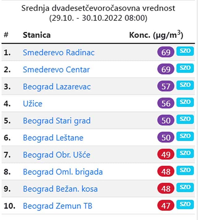 U pitanju su, da napomenemo, zvanični podaci, koje očitavaju merne stanice Republičke agencije za zaštitu životne sredine.