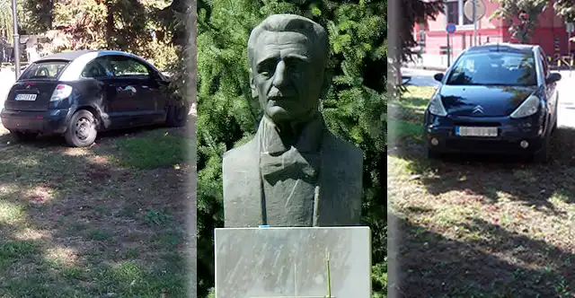 Mada je spomenik u slavu komediografa, nije smešno. Naprotiv. Svedoci smo da se kazne za nepropisno parkiranje pišu i vozila odnose za mnogo manje prekršaje. Ali, danas je nedelja, božji dan, verovatno i oni koji bi trebalo da se pozabave ovakvom bahatošću odmaraju. Ili, što bi čika Brana rekao, „grešni državni službenici imaju i inače dovoljno nevolja na grbači, pa bi grehota bilo još i ovu im tovariti“. Nedeljom, pogotovo. Zato već sutra dobro otvorite oči, gde se i kako parkirate, budžet mora da se puni, baš kao što nedeljom mora da se odmara.