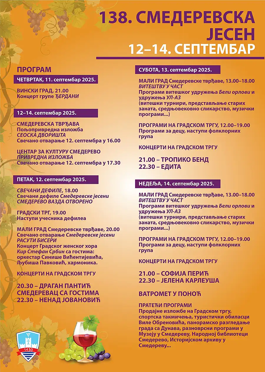 Objavljen program 138. Smederevske jeseni