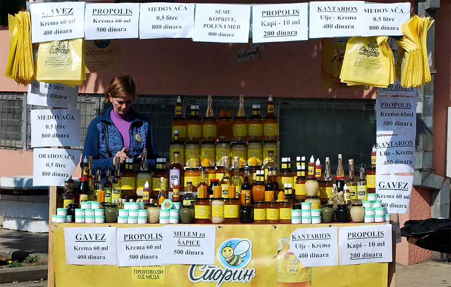 Dakle, do kraja ovog meseca, na pedesetak tezgi svi koji žele mogu da pazare cveće, med, zimnicu ili vino, a to nije sve – ima tu još koječega drugog, od voća i slatkiša, preko raznih đinđuva i grnčarije do narodne radinosti…