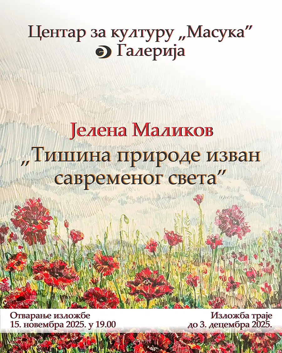 15. novembar 2025 – U galeriji Centra za kulturu „Masuka“ od ove subote posetioci će moći da pogledaju radove mlade umetnice Jelene Malikov iz Niša.