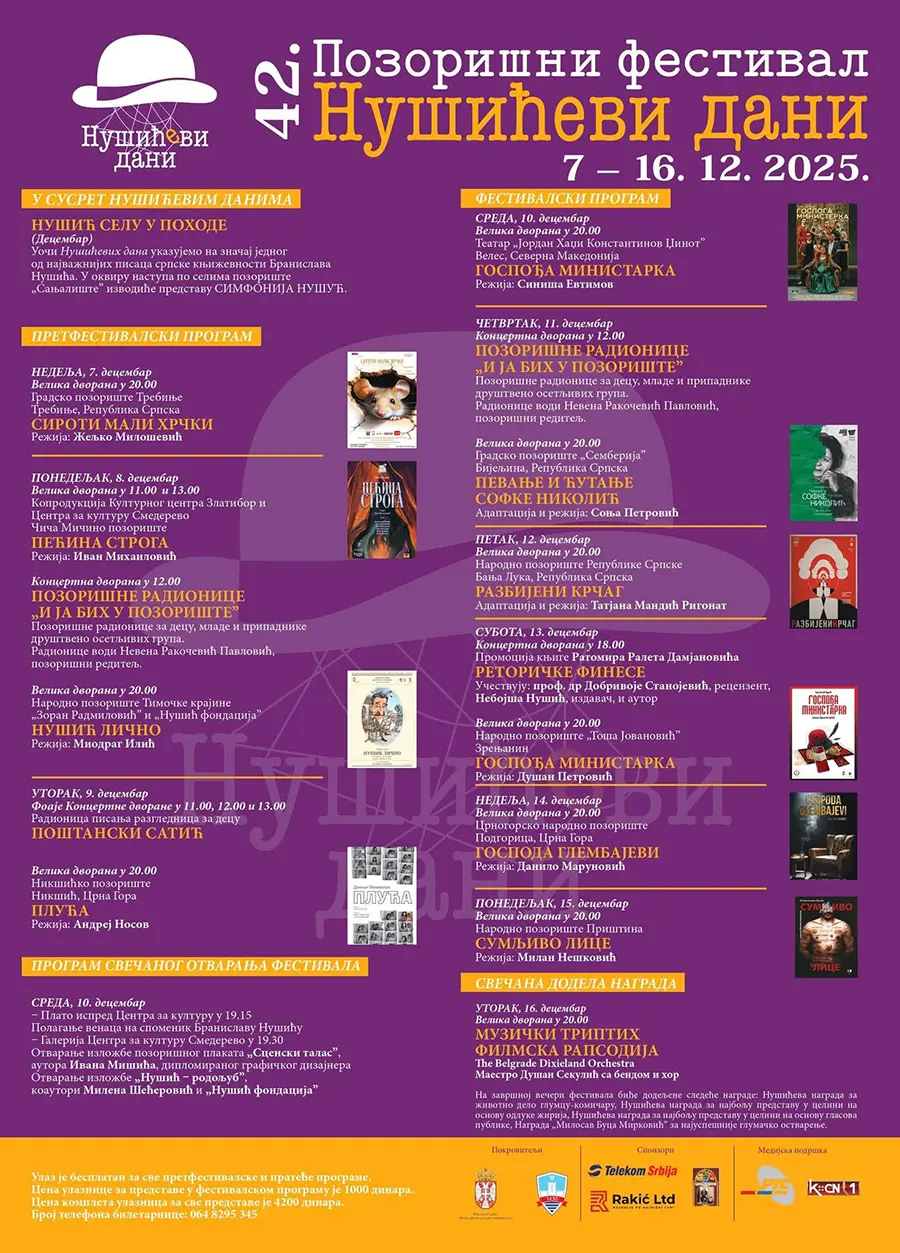 7. decembar 2025 – U Velikoj dvorani smederevskog Centra za kulturu Gradsko pozorište iz Trebinja ove nedeljne večeri izvešće predstavu „Siroti mali hrčki“, poznatu satiru scenariste Gordana Mihića.