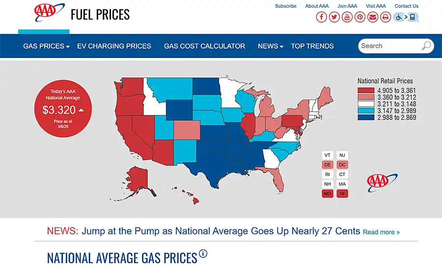 Ako vam je za utehu i u Americi poskupljuje gorivo. Prosečna cena galona benzina u SAD premašila je 3,32 dolara ovog petka (u dinarima to bi bilo oko 87 dinara preračunato u litre). To pokazuju podaci organizacije AAA (Amerikan Automobile Association, nešto kao naš Auto moto savez).