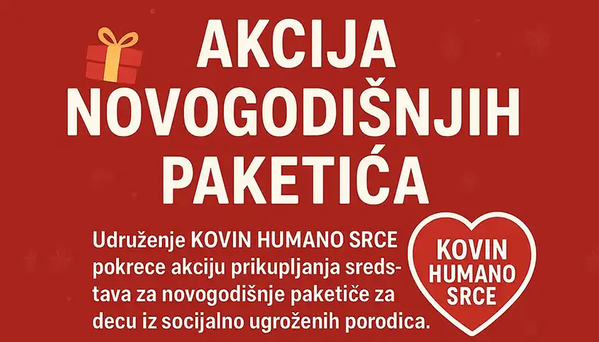 29. novembar 2025 – Organizacija „Kovin humano srce“ i ove godine organizuje podelu novogodišnjih paketića za decu do 10 godina. Prijave za paketiće su otvorene, podela će biti na dve lokacije, u Deliblatu i Gaju, a tačan datum biće naknadno objavljen. Ove godine, kako kažu, pripremaju i drugačiji, bogatiji praznični program koji će doneti još […]