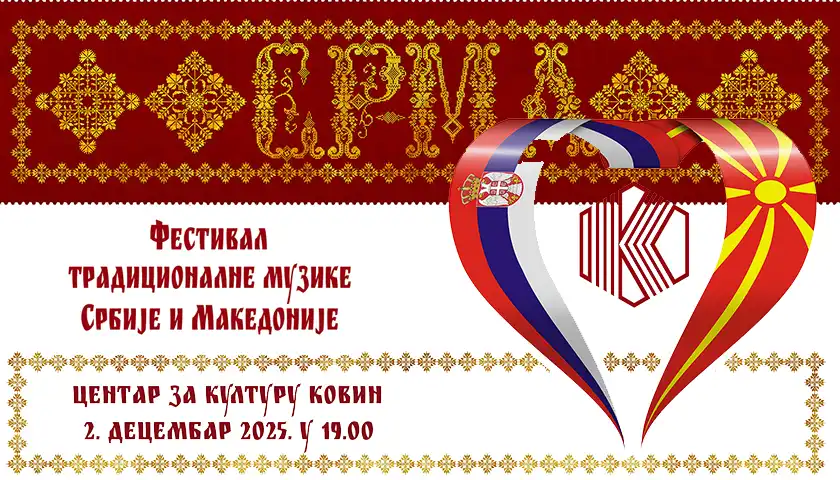 2. decembar 2025 – Festival tradicionalne muzike Srbije i Severne Makedonije „SRMA“, koji zajednički organizuju bratski gradovi Kovin i Kavadarci, biće održan ovog utorka, 2. decembra, sa početkom u 19 časova u pozorišnoj sali kovinskog Centra za kulturu. Na Festivalu će nastupiti polaznici Muzičke škole „Lazo Micev – Rale“ iz Kavadaraca i polaznice škole etno […]